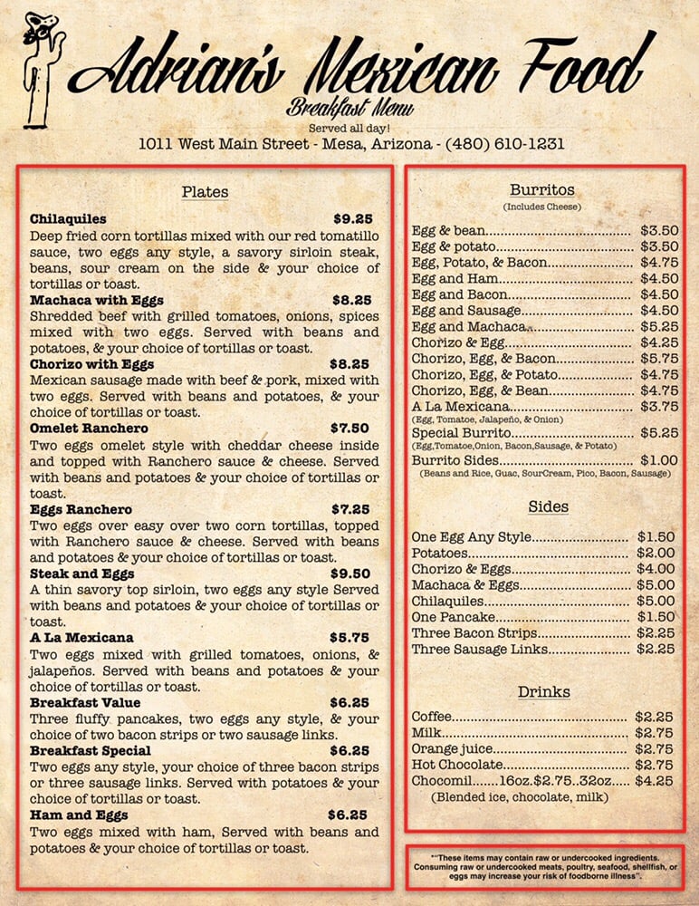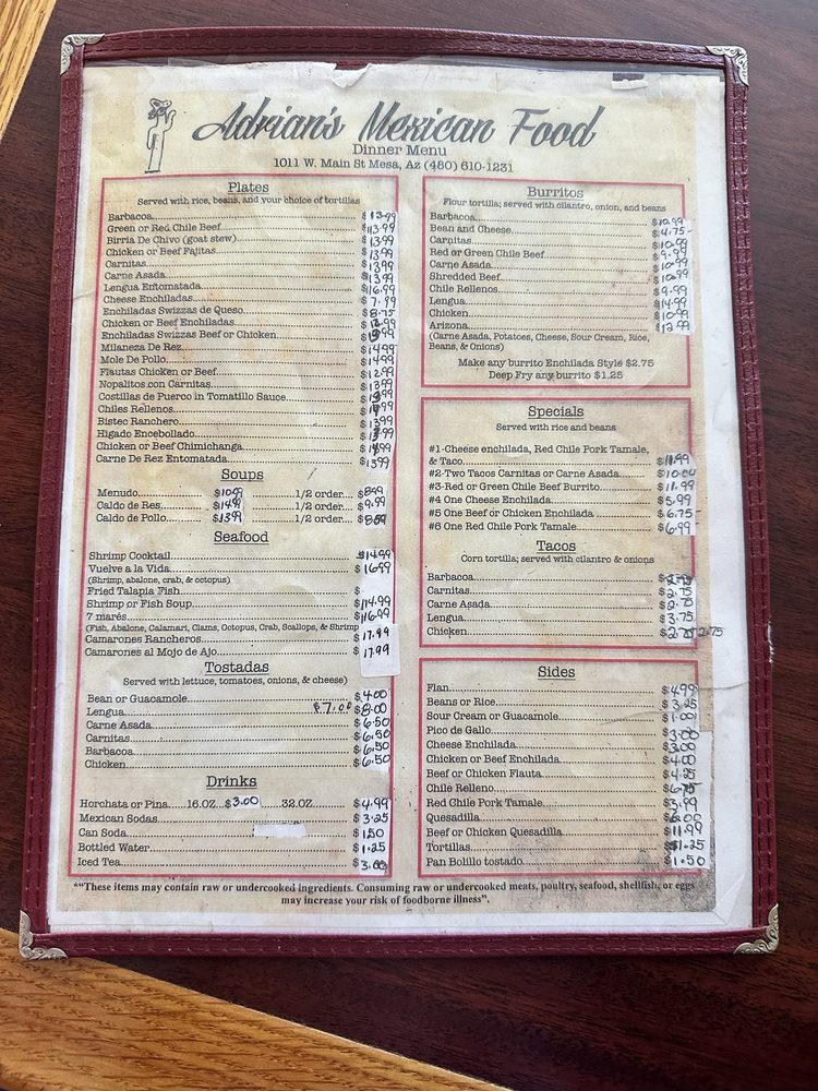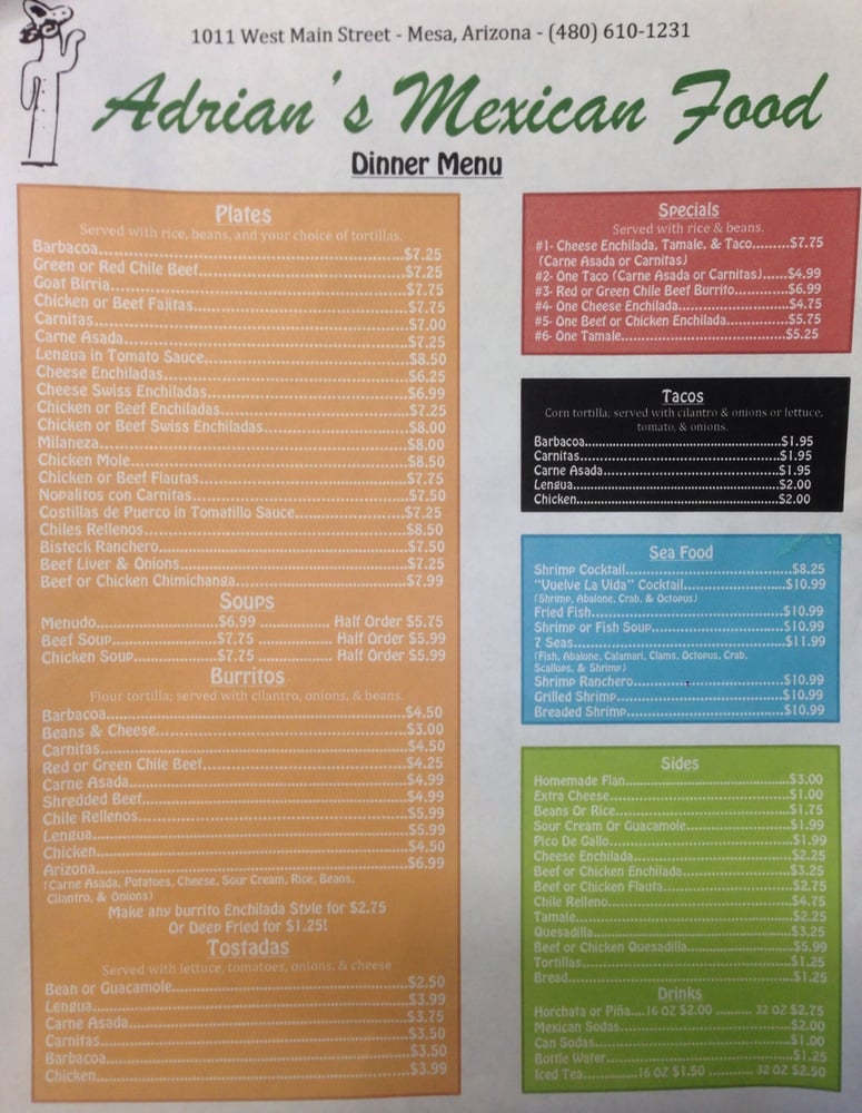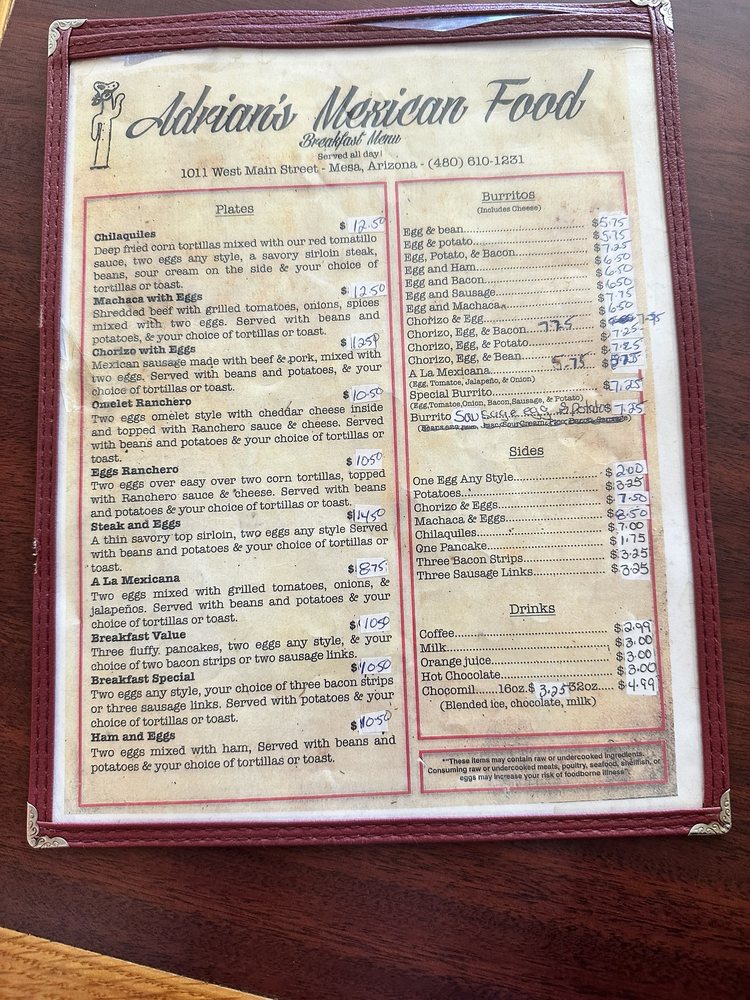 Introducing Adrian’s, a charming Mexican restaurant located at 1011 W Main St, Mesa, AZ. This culinary gem is all about authentic flavors and a warm, inviting atmosphere. Perfect for breakfast, brunch, or lunch, Adrian’s menu tempts with dishes that have earned a loyal following.